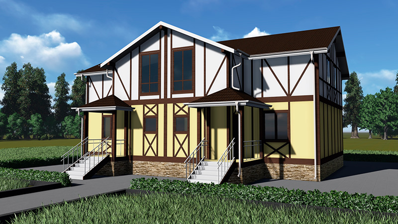 Уютный двухэтажный дом — прекрасный вариант для проживания небольшой семьи.